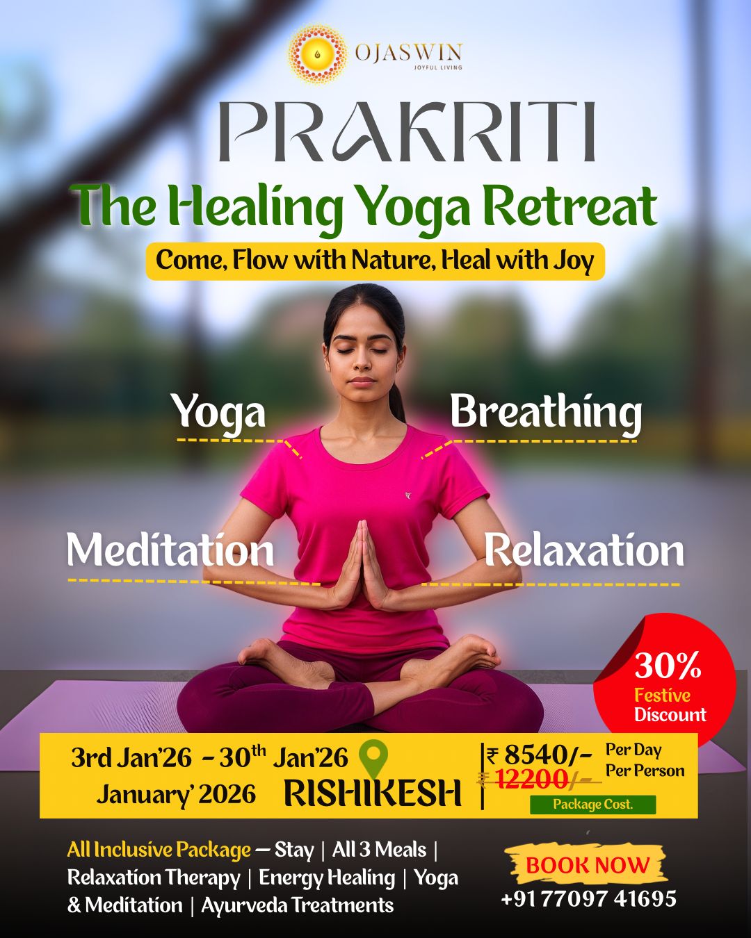 The “Himalayan Divine Connection” – An Authentic Residential Yoga Retreat for Holistic Happiness, Whole Body Healing, Spiritual Growth and Inner Awakening.” OJASWIN Team has exclusively designed this programme for your deep spiritual healing, learning, inner personal growth and transformation.
